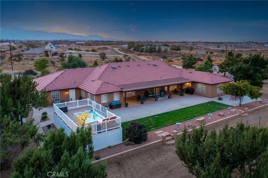 Must see home with amazing views! Come see this beautiful ranch style horse property located on over 2 acres of land. This home features 4 bedrooms, 2bathrooms, with 2 additional bonus rooms that can be used as bedrooms or offices. The interior floor plan is great for entertaining with a remodeled kitchen that opens to the family room and has a nice view of the covered patio. The home features dual master suites, one with a wood burning fireplace, and a split floor plan for multi generational families. There is a walk in pantry in the kitchen, a butler's pantry with extra storage, and a laundry room with room for 2 washers. The extra bedrooms are a good size and the 3 car garage is finished with built in cabinets and a tandem extra space for storage. Outside you will find the covered patio, swim spa with deck, volley ball court with kids play area, and 2 sheds, each on a slab foundation. The property has a 500 gallon propane tank, as well as a new electric heating and AC system for the main portion of the home. The spacious property provides views of the desert and surrounding mountains with breathtaking sunsets.