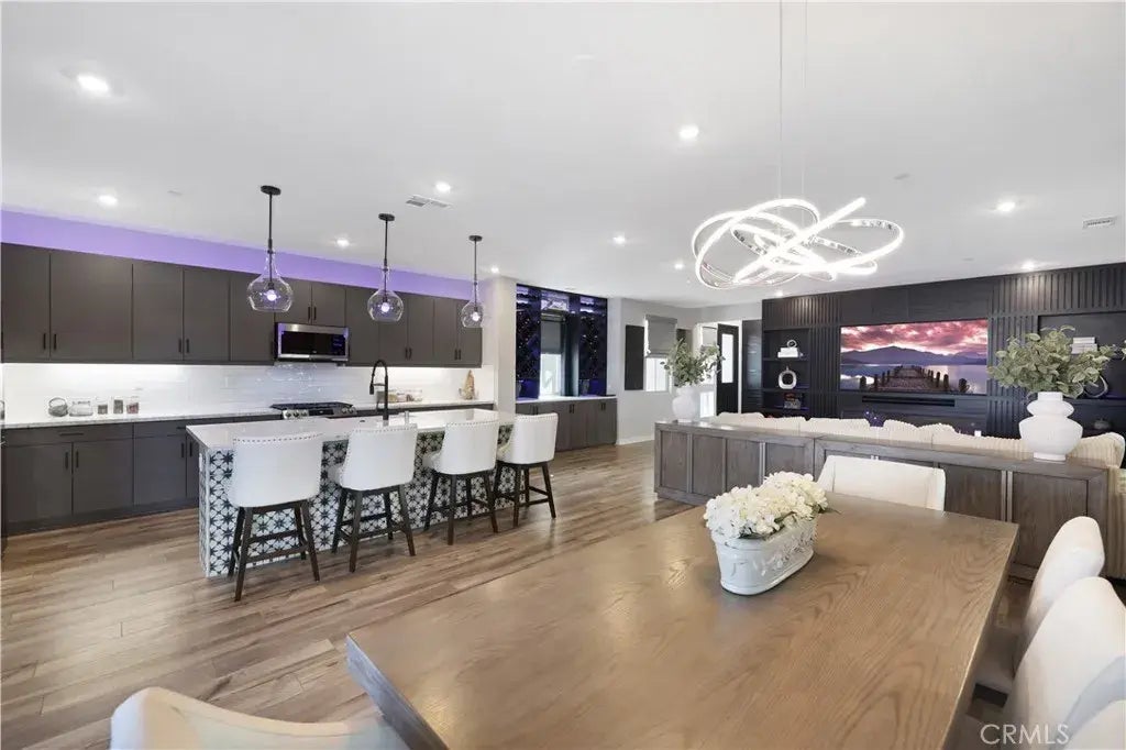 A MASTERPIECE OF MODERN LUXURY Welcome to a residence that redefines elevated living. Nestled within the prestigious Narra Hills Homes Community, this showstopping property boasts over $200,000 in premium upgrades, each element meticulously selected for those who appreciate timeless luxury and innovative design. From the moment you enter, you're greeted by a soaring foyer featuring a custom-paneled accent wall and an exquisite designer chandelieran immediate testament to the craftsmanship that continues throughout the home. Every inch of this home is thoughtfully designed: Custom flooring throughout Stunning stone countertops and designer tile backsplash Soft-close cabinetry, trash pull-outs, and enhanced electrical + insulation upgrades Even the epoxy-finished garage exudes sophistication The main floor includes a private bedroom retreat, perfect for guests or multigenerational living. A series of five custom paneled feature walls, a built-in entertainment center, and a beautiful wine rack make this home ideal for elevated entertaining. The heart of the home is an expansive open-concept kitchen, dining, and living area, flowing seamlessly into an incredible wrap-around enclosed patioa true private oasis. Featuring stamped concrete, built-in seating, planters, a dry bar, and room for a personal fitness or lounge area, this outdoor haven brings resort-style living to your doorstep. Upstairs, you'll find a spacious loft with a built-in desk, perfect for remote work or study. A cleverly added custom-paneled door turns one secondary bedroom into a private ensuite, while the pri