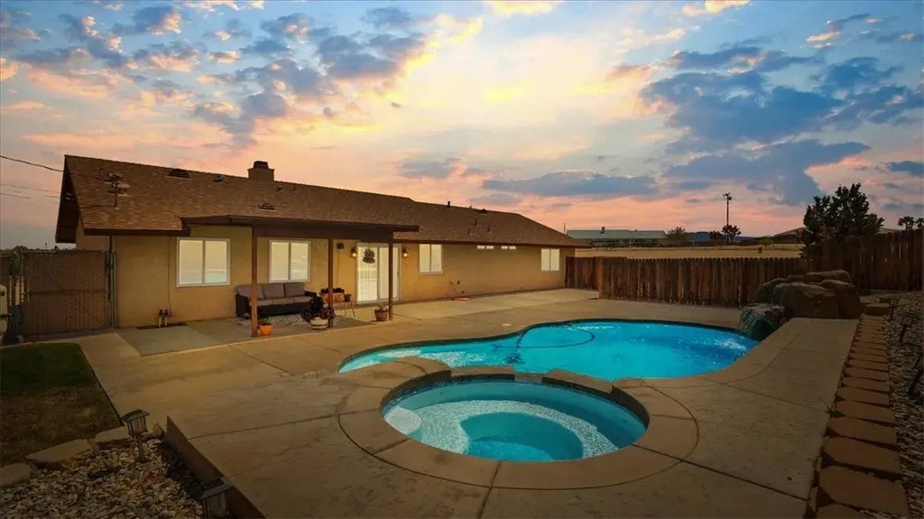 Escape to Your Desert OasisWhere Modern Luxury Meets Endless Possibilities! Welcome to 17896 Mesa St., a sprawling 3-bedroom, 2-bathroom home (plus a versatile denideal as a 4th bedroom, home office, or hobby space) offering 1,661 sq ft of thoughtfully designed living space on a sprawling 1.53-acre lot, blending room to grow with effortless style. This isnt just a homeits a lifestyle crafted for those who crave space, serenity, and the freedom to dream big. With brand-new windows bathing every room in natural light, a state-of-the-art HVAC system (installed December 2023) for year-round comfort, and a rejuvenated pool/spa heater (2024) ready for sunset soaks under the stars, this property is a turnkey paradise. Step into a kitchen designed to inspire, where gleaming quartz countertops and sleek cabinetry create a chefs haven for hosting dinners or savoring quiet mornings. The upgrades dont stop therefresh ductwork ensures crisp, clean air, while energy-efficient windows keep utility bills low and tranquility high. Outside, your private empire awaits: imagine summer barbecues on the patio or stargazing from your spa as the desert breeze carries the scent of sage. This immaculately kept home has too many recent improvements to name here, but be sure to ask for the full list! With room for a workshop, garden, or even a guest casita, this lot isnt just landits a blank canvas for the life youve always envisioned. Located minutes from the best amenities in the high desert and local markets, this home blends secluded living with convenience. But hurryproperties with this much pote