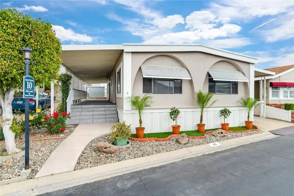 Welcome to this Charming and well maintained 2 Bedroom, 2 Bath Manufactured Home in this highly sought after gated 55+ community of Alta Laguna. Step into this beautifully updated home offering comfort, functionality, and modern style throughout. This home boasts vinyl plank flooring. Newly painted with neutral tones inside and out, creating a warm and inviting atmosphere, The heart of the home includes a spacious living area and a cozy den enhanced by a beautiful barn door in the hallway closet, adding a touch of rustic elegance and extra storage. The Jack-and-Jill bathroom conveniently connects the secondary bedroom and living space, making it perfect for guests or family. The spacious kitchen is a true highlight featuring a large cooking island and a bold stainless steel hood with an open layout thats perfect for entertaining or everyday living. Enjoy the privacy of the primary suite complete with a nicely remodeled handicap-accessible stand-up shower, designed with both comfort and accessibility in mind. A dedicated laundry room adds to the homes functionality, while the front patio welcomes you with new carpeting, offering a lovely spot to relax. Enjoy all the amenities of living in this community such as, beautifully landscaped grounds, a club house, heated pool and spa, a golf putting green and its own entrance to The Pacific Electric Trail and So Much More! Dont miss your chance to own this move-in-ready gem that blends practical updates with thoughtful design. Not to mention the chance to enjoy the good life here in Rancho Cucamonga!