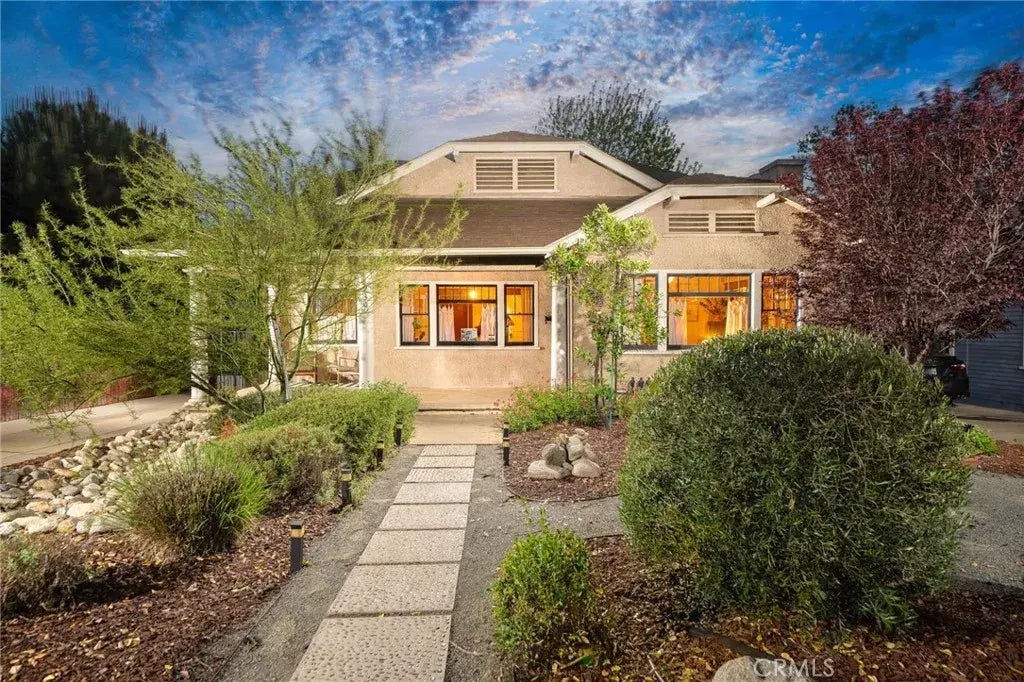 Welcome to 230 E J Street, Ontario, CA 91764 a charming Craftsman-style bungalow nestled in the heart of Ontarios Rosewood Court Historic District. Built in 1924, this beautifully preserved 3-bedroom, 1-bathroom home spans 1,444 square feet and blends timeless character with tasteful modern updates. From the moment you arrive, you'll fall in love with the inviting curb appeal, complete with native landscaping, mature trees, and a welcoming front porch perfect for morning coffee or evening unwinding. Step inside and be greeted by original hardwood floors, rich wood trim, and built-in cabinetry that reflect the home's historic roots. The spacious living room features a cozy fireplace flanked by glass-front built-ins and picture windows that flood the space with natural light. The formal dining room boasts original wood details and an abundance of charm, making it ideal for gatherings or intimate dinners. The thoughtfully remodeled kitchen is a standout! You'll find two toned sage-green and natural wood shaker cabinets quartz countertops, designer tile backsplash, floating wood shelves, a farmhouse sink, and stainless steel appliances. Just off the kitchen is a charming breakfast nook, perfect for casual meals or a quiet place to read. Each bedroom is generously sized and filled with natural light, maintaining the warmth and character of the home. The full bathroom features vintage-style tile flooring, built-in storage, and updated fixtures that honor the era of the home while adding contemporary comfort. Bonus features include a basement which houses the laundry room and is