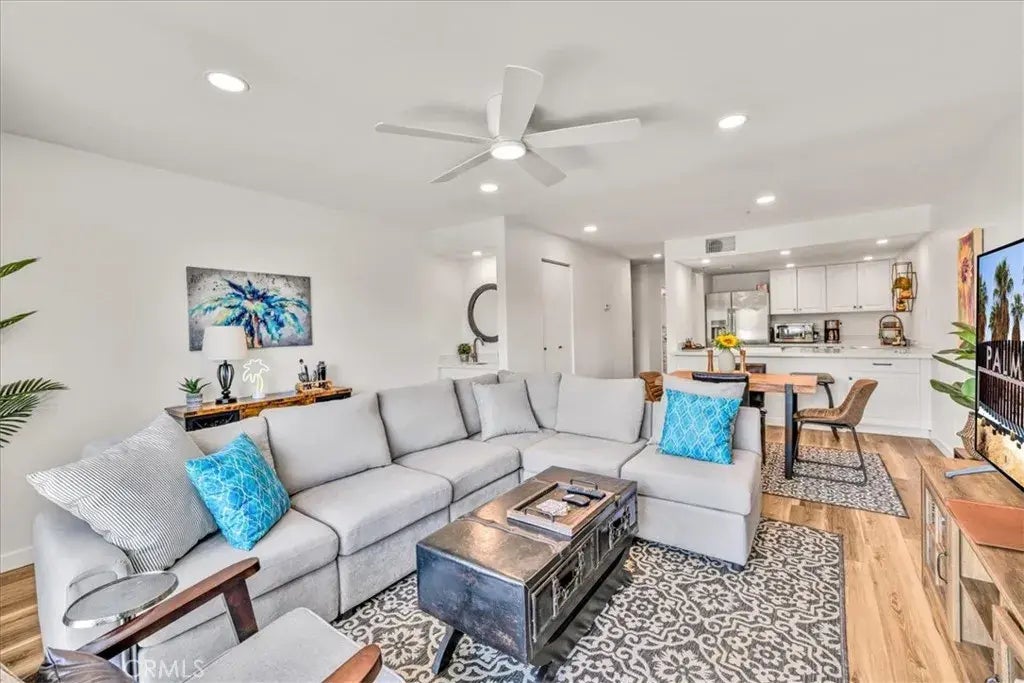 Price Improvement! Seller is willing to pay up to 1 year of the land lease ($217.89/month) with an acceptable offer. Lease runs through May 2064. Welcome to your perfect desert oasis in Caballeros Estates, a gated community totaling 106 units. This completely remodeled 2 bedroom, 1.5 bath tri-level condo features: an open, light-filled floor plan with luxury vinyl flooring in living areas and bedrooms, the kitchen offers beautiful quartz countertops, new stainless steel appliances, gun metal black stainless steel sink and faucet, ceramic slate tile flooring, satin white cabinets showcasing quality craftsmanship and modern style. The dining and living room is open concept, bright, spacious, and includes a wet bar and gas fireplace to enjoy on those chilly desert evenings and a half bath for guests. The balcony offers you a private outdoor retreat area to take in the views of the San Jacinto mountains while relaxing with friends and family and includes a private spiral staircase leading to a semi-private pool. There are two spacious bedrooms, laundry room, and fully remodeled bathroom featuring a walk in shower with rainfall water system, quartz countertops, ceramic slate tile and plenty of storage space upstairs. There is a one car covered carport plus plenty of parking within the complex on the lower level. The community includes four pools, spa, a sauna, and clubhouse. The HOA is $593 monthly which covers water, trash, gas, internet, cable, exterior pest control, electronic gates, pool service, landscaping and just completed installation of a brand new hot water and soften