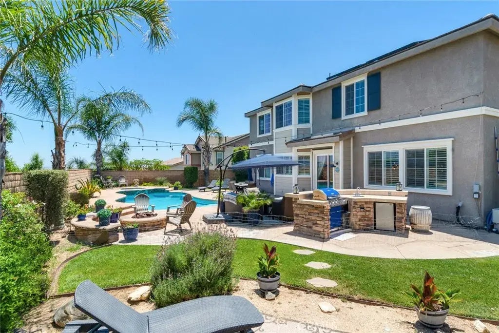 PRICE IMPROVEMENT OF $10K AND SOLAR INCLUDED! Welcome to this Entertainers Dream Home! It seamlessly blends style, comfort, and functionality. BOASTING 4 SPACIOUS BEDROOMS ,4 FULL BATHROOMS AND A BONUS ROOM THAT COULD EASLIY BE CONVERTED INTO A DOWNSTAIRS 5 BEDROOM FOR MULTI GENERATIONAL LIVING. Including a den and loft. The loft has custom built-ins and double work stations. The Home also INCLUDES 34 SOLAR PANELS to assist in reducing energy costs! This stunning residence has been professionally decorated. It is nestled on a large lot of over a quarter acre with a spectacular view of the mountains. It offers everything you need for luxury living and unforgettable gatherings. Located in Beautiful Coyote Canyon with Award winning school Districts! Not to mention the Westgate project will be an outdoor mall with restaurants, parks and shopping close by. Step inside to find a bright and airy open floor plan adorned with high ceiling, neutral dcor and custom interior shutters throughout. The freshly installed vinyl plank flooring flows into a gorgeous white kitchen featuring granite countertops with a large island, sleek cabinetry, and ample space for culinary creations. The homes open layout makes hosting effortless, with seamless transitions from living areas to the backyard oasis. Upstairs you will find a bonus room/loft providing additional space. The Large Primary bedroom offers a sanctuary to retreat with a sitting area and large bathroom with tub and shower and private toilet room. The two other bedrooms are a good size and share a bathroom. The fourth bedroom is large a