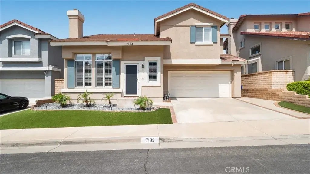 Welcome to this immaculate 3-bedroom, 2.5-bathroom home, perfectly nestled in a desirable neighborhood known for its top-rated schools and family-friendly atmosphere. This turnkey residence features drought tolerant landscaping and upgrades throughout, offering both comfort and style in every corner. Step inside to discover a thoughtfully designed floor plan with vaulted ceilings, modern finishes, plantation shutters and luxury vinyl plank flooring. The spacious kitchen with upgraded cabinets, quartz countertops, and subway tile backsplash open to the dining room ideal for both everyday living and entertaining. The bathrooms have been tastefully updated, and the home is meticulously maintained from top to bottom. Upstairs you will find 3 spacious bedrooms including the primary bedroom with ensuite bathroom. Enjoy outdoor living in the tranquil backyard, complete with raised garden beds already flourishing with vegetables, and a covered patio with ceiling fan perfect for relaxing or hosting gatherings. Security cameras and high end security screen doors offer added peace of mind, while the low-maintenance yard allows for more time enjoying your beautiful surroundings. Conveniently located just minutes from premier shopping and dining at Victoria Gardens Mall, with easy access to major freeways, parks, and more this home truly has it all. Dont miss your opportunity to own this exceptional property!