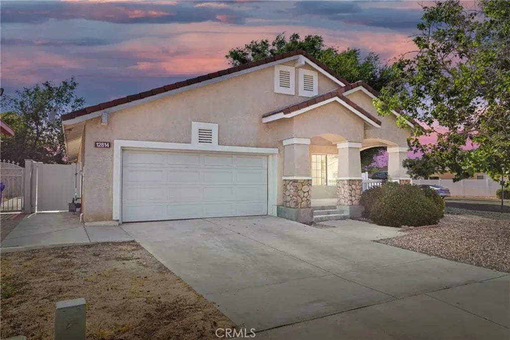 Welcome to Victorvilles desirable Eagle Ranch family community, where this immaculate corner-lot home on Heston Street offers wonderful curb appeal and a charming front porch that welcomes a great conversation over coffee. Located in a quiet neighborhood close to schools, shopping, dining, and with quick freeway access, its an ideal choice for families and commuters alike. This well-maintained 3-bedroom, 2-bath home features a versatile den that can easily convert to a 4th bedroom. With 1,590 square feet of well-designed living space, youll appreciate the tall ceilings, abundant natural light, and open-concept layout thats perfect for everyday living and entertaining. Step into the inviting living room with vaulted ceilings, easy-care laminate flooring, plush carpet in the bedrooms, and a cozy stone gas fireplace. Youll be inspired to create in the updated kitchen featuring quartz countertops, stainless steel appliances, under-cabinet lighting, a spacious island, and plenty of cabinet storage as well as a sizable pantry. The primary suite includes a walk-in closet, an energy saving swamp cooler, and an en-suite bath with dual sinks and a walk-in shower. Two additional sunny bedrooms offer closet organizers! The hallway cabinetry, indoor laundry, a finished garage, tile roof, and newer A/C unit add to the comfort and functionality of this sweet home. The private, fully fenced backyard is low-maintenance and ideal for outdoor living. Move-in ready and full of pride of ownership, Heston Street is the perfect place to write your next chapter of life.