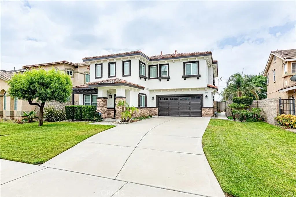 From the moment you arrive, this elegant home offers a warm welcome with its inviting curb appeal. Step inside to discover a spacious formal living and dining area that flows seamlessly into the family room, highlighted by a cozy fireplace and open to the chefs kitchen. The kitchen is a culinary delight, featuring granite countertops, a center island with breakfast bar, walk-in pantry, and a charming dining nook. A guest bedroom and full bath are conveniently located on the main floor. Upstairs, the luxurious primary suite includes a spa-inspired bathroom with dual vanities, soaking tub, separate shower, and an expansive walk-in closet. Youll also find two additional bedrooms, a full bathroom, an upstairs laundry room, and a versatile loft spaceperfect for a home office or media room. The backyard is newly landscaped with lush sod, ideal for outdoor entertaining. New laminate wood flooring adds a modern, upscale touch throughout the home.
