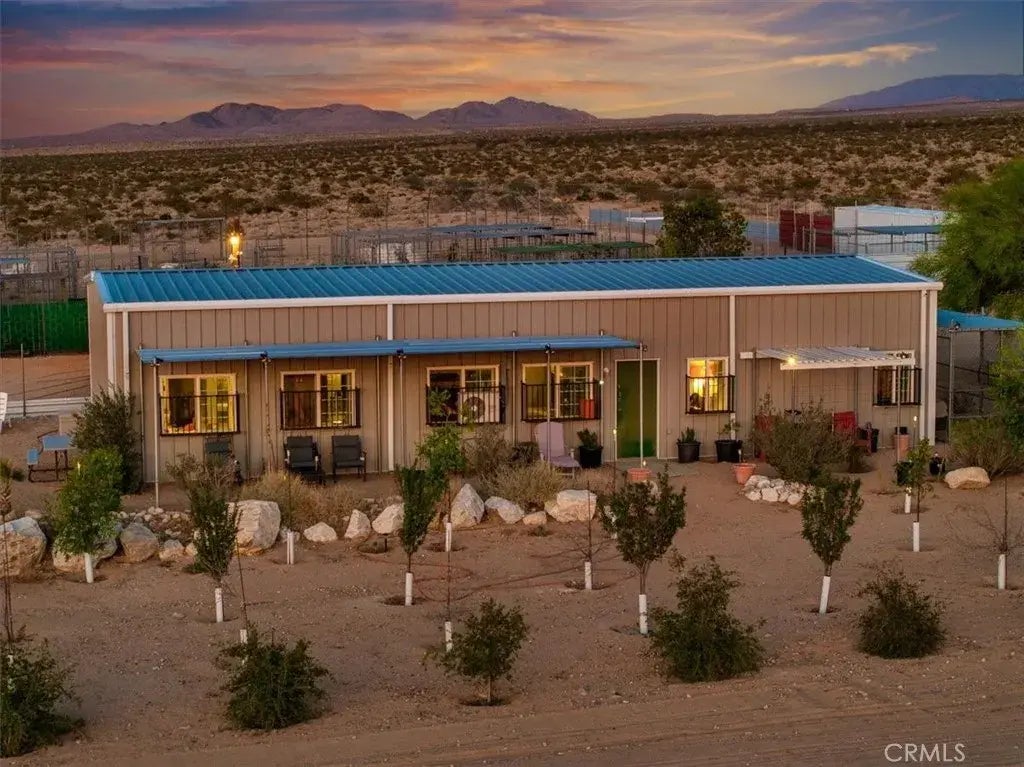 Imagine this!! A Fabulous Estate Property Featuring a Wildlife Sanctuary with Lifetime Commercial use permit, Equestrian Ranch, Multi-Purpose use, Multi Family Compound. The Possibilities Are Endless! A rare opportunity to own a truly one-of-a-kind property located in the heart of the Mojave Desert. This unique property is nestled on a quiet paved street and offers 37+ acres of sweeping peaceful mountain views, extraordinary desert landscapes, breathtaking sunsets and approximately 335 days of clear beautiful blue skies in the popular High Desert Community. Additional adjoining acreage is available for purchase if desired. This residence is a light filled, airy, open concept with soaring 16 ft ceilings, all steel construction, double pane windows, R38 insulation throughout and all steel roof making this home extremely energy efficient and fire retardant. Construction features a massive 6 concrete slab, steel doors and covered front and side patios to view the mountains and desert valley below. The property is completely fenced, has a 600 ft. well, water tank storage, covered parking, and a delightful orchard with multiple varieties of fruit trees including almond, apple, apricot, jujube, pear, peach, plum and pomegranate. The interior boasts an open floor plan with the kitchen and living space complimenting the center of the home and two huge primary en-suite bedrooms with en-suite bathrooms creating a split floor plan. The large, oversized utility room has storage for washer, dryer, freezers, and more All appliances are included! Property has internet and security cameras