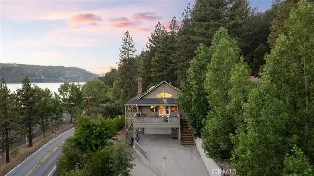 Set directly across from the lake and a boat launch, this 4-bedroom, 3-bath home captures the essence of lakeside livingsurrounded by an idyllic mountain setting and sweeping views from nearly every room. The scene invites you to slow down and sip a drink on the brand new Trex deck, where sailboats drift by and eagles glide overhead. A remodeled interior is filled with natural light in a great room with skylights and walls of windows. The open layout offers space for dining, conversation, or game nightsall framed by views of the lake, forest, and iconic San Gorgonio, its snow-capped peak creating a dramatic winter backdrop. Throughout, wide plank vinyl floors offer easy maintenance. The stunning kitchen includes timeless granite slab counters, custom cabinetry, and GE Caf appliances, with a 6-burner rangeboth practical and beautiful. The primary suite has French doors opening to lake views, a walk-in closet, and a dual-sink granite vanity in the ensuite. Another cozy bedroom across from a full bath could easily flex into a den or office. Downstairs, two spacious bedrooms open to the outdoors and share a bathroom. A stair lift chair from the garage adds convenience for anyone looking to avoid stairs. Mature trees, boat parking, and lake access just across the road make this feel like a true getaway. Launch your kayak, fish from the public dock, or rent a seasonal slip at Captain Johns Marina just minutes away. Beyond the lake, nature is always within reach. San Gorgoniothe tallest peak in Southern Californiaframes the skyline with incredible scenery. Local trails like Grays