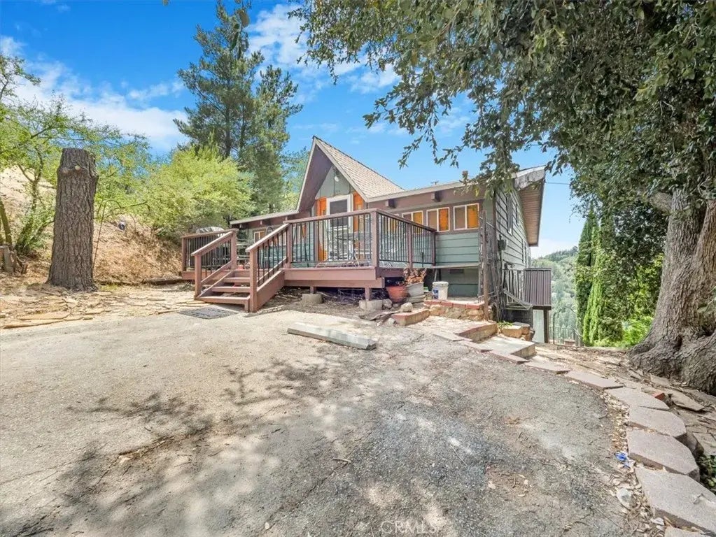 This charming 3 bedroom, 2 bathroom is perched on a hillside in the San Moritz area of Crestline and provides panoramic views of Lake Gregory. There is a full bath on each level, 2 bedrooms on the main floor. The downstairs level features a third bedroom and a room with access to the deck that can easily function as a fourth bedroom. The kitchen has stainless steel appliances and wood cabinets that match the pitched tongue and groove ceiling that extends into the living room. There is a freestanding stove in the corner adding to the charm of this special property. The loft area is separated from the living area by just a few steps and wrought iron railing. This area could easily be used as a dining room, office space, play area, or reading nook. The laundry area of this home is located on the landing between the first and second floors for easy access. The thing that truly sets this property apart is the large completely glass-enclosed deck which functions as a sunroom. The large windows in this area provide expansive, breathtaking views that are the first thing that can be seen as soon as you enter the property. The sunroom and large bottom floor deck are not included in the property's square footage, but provide additional living area. Newer copper plumbing and newer roof. The home has been well cared for and features brand new exterior paint and new carpeting ensuring the new homeowners can move right in and call this property home.