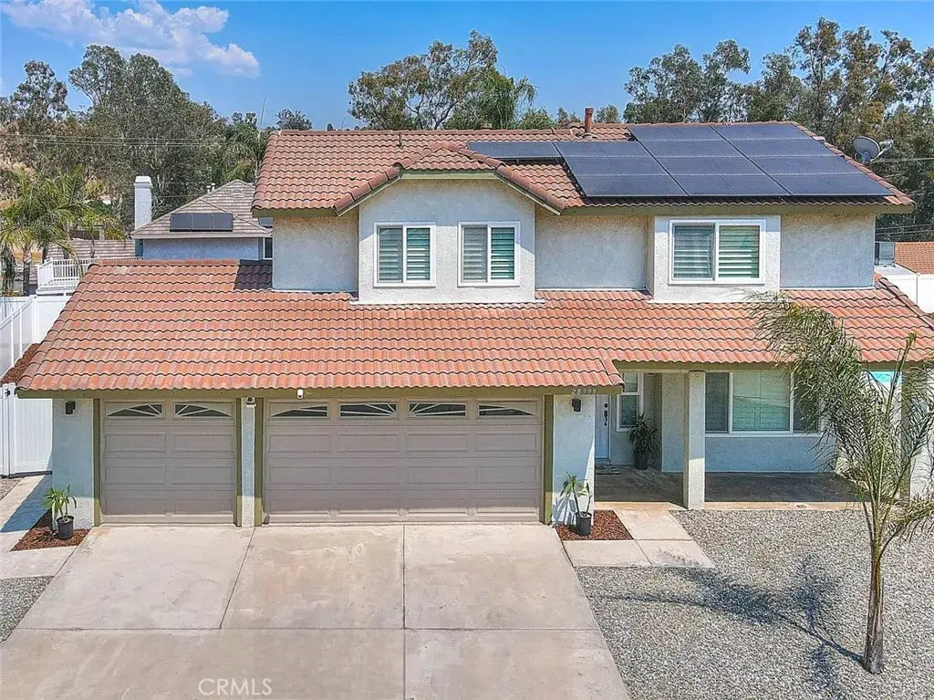 Immaculate East Highland Pool Home in Redlands Unified School District. Welcome to this beautifully upgraded 3-bedroom, 2.5-bath home tucked away in a quiet cul-de-sac in East Highland, offering both comfort and modern appeal in one of the area's most desirable neighborhoods. Step inside to a spacious, freshly painted interior featuring tile flooring, vaulted ceilings, and brand-new recessed lighting in the living room. The inviting family room with a cozy fireplace flows seamlessly into a well-appointed kitchen, boasting white cabinetry, granite countertops with a waterfall edge, under-cabinet lighting, and newer appliances. Plantation shutters add elegance throughout. Upstairs, you'll find two generously sized bedrooms and a remodeled full bath, plus a spacious primary suite complete with a large closet and a stunning en-suite bathroom with an oversized shower. Enjoy peace of mind and energy efficiency with a newer solar system (installed in 2022), new A/C and furnace, and a hardwired security system. This home is also equipped with a whole house attic fan, perfect for reducing energy costs. Additional recent upgrades include new ceiling fans and dining room lighting, new double-pane back door and windows, and epoxy flooring with custom cabinetry and drywall in the 3-car garage, featuring a quiet LiftMaster motor. Step outside to your own backyard oasis, featuring a new pool pump, new vinyl fencing enclosing the entire property, and a large covered patio ideal for entertaining. The spacious backyard also offers ample space for play, relaxation, or RV/additional vehicle pa