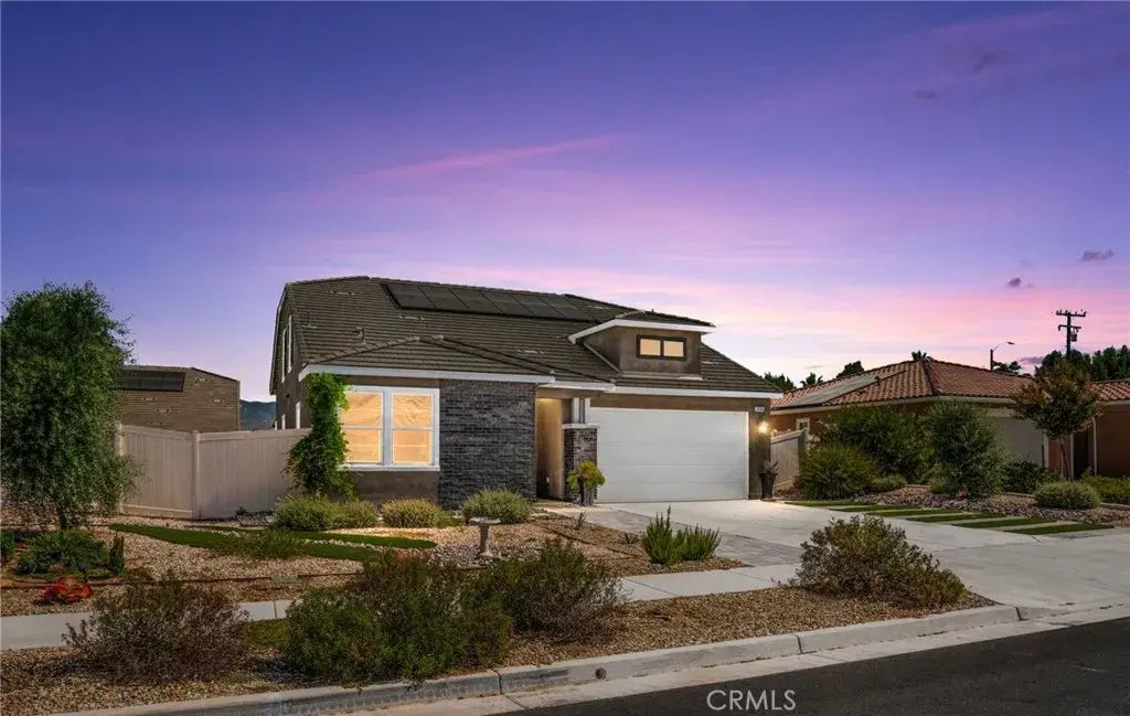 Welcome to this energy-efficient modern home in the heart of Loma Linda, one of the worlds five original Blue Zones known for healthy, intentional living. Built in 2021 with thoughtful upgrades throughout, this 4-bedroom, 3-bathroom home offers over 2,500 square feet of well-designed living space. Step inside to soaring 10-foot ceilings and an open concept floor plan that blends the kitchen, dining, and living areas. The kitchen features crisp white cabinetry, quartz countertops, a deep farm-style sink, and stainless-steel appliances. Three bedrooms, including the primary suite, are located on the main floor. Upstairs offers added privacy with a fourth bedroom, full bath, and built-in desk and storage. An ideal layout for remote work, multigenerational living or space for guests. The front yard is beautifully zero-scaped with drought-tolerant plants and an automatic Rainbird drip system. Out back, enjoy a low-maintenance yard with artificial turf, a decorative garden wall with river rock accents, a spacious covered paver patio with lighting and ceiling fans, perfect for entertaining or quiet evenings under the stars. Additional features include built-in closet organizers, a tankless water heater, and a 2-car attached garage. The home is also equipped with paid solar, helping you keep utility costs low while living more sustainably. The location is hard beat, just five minutes from Loma Linda University Medical Center and easy access to local microbreweries, bakeries, and some of the best restaurants in the area. What you'll love most though, is the community feel on a stree