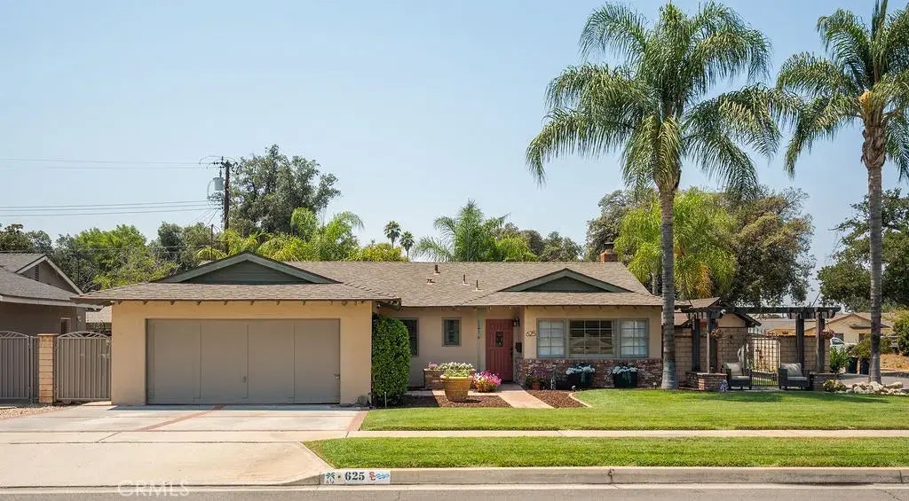 Discover serenity at 625 Cardinal Lane. This retreat offers 3 bedrooms and 2 bathrooms within a comfortable 1,750 square feet. (this includes the bonus room) Inside, enjoy the comfort of newer upgrades including central air and heat, complemented by a whole house fan. Other recent updates include wood-like tile flooring, wainscoting, insulation, fresh paint, and a newer 200-amp panel. One bedroom has been thoughtfully expanded, featuring French doors that open to beautiful views of a custom sparkling pool, while another offers an en suite bathroom and built-in cabinets. The third bedroom, has a built-in day bed. The serene interior flows effortlessly into the custom backyard through a Wood Pella slider, unveiling a custom pool and spa. An inviting custom outdoor kitchen with a built-in BBQ and a cozy fireplace offers a perfect setting for quiet reflection and entertaining. Surrounded by block walls, the expansive 8,320 square foot lot is dotted with green space, a convenient shed, lush fruit trees, and beautifully landscaped gardens. Located on a tree-lined cul-de-sac, this home is just a short distance from the university, offering an ideal blend of calm and convenience. Embrace the understated elegance and tranquility of this beautiful Redlands home.