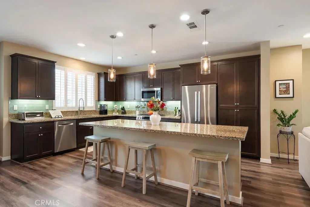 This stunning upgraded 4-bedroom, 4-bathroom end unit offers 2 primary bedrooms and is located a short distance from the vibrant Claremont Village. The first primary suite features a large walk-in closet with built-ins, a separate shower and soaking tub, dual sinks, and a private restroom. The second primary bedroom (located on the first floor) offers garden views, a private bathroom, and a large closet. The home includes two additional guest bedrooms and two guest bathrooms. The modern kitchen is well-appointed, with an upgraded backsplash, contemporary light fixtures, a spacious island with a breakfast bar, and ample cabinet storage. It is perfectly integrated into the modern open floor plan which includes a bright living room, formal dining room, and a large balcony offering mountain views. Additional features include stylish paint colors, a private laundry room, fully finished garage, tankless water heater, shutters throughout, ceiling fans throughout, vinyl laminate flooring, and much more. Nestled in a community known for its amazing location and amenities, including a dog park, pool, and spa, it's more than just a place to liveit's a lifestyle. Don't miss the opportunity to call this home yours. Come and experience the epitome of modern living today!