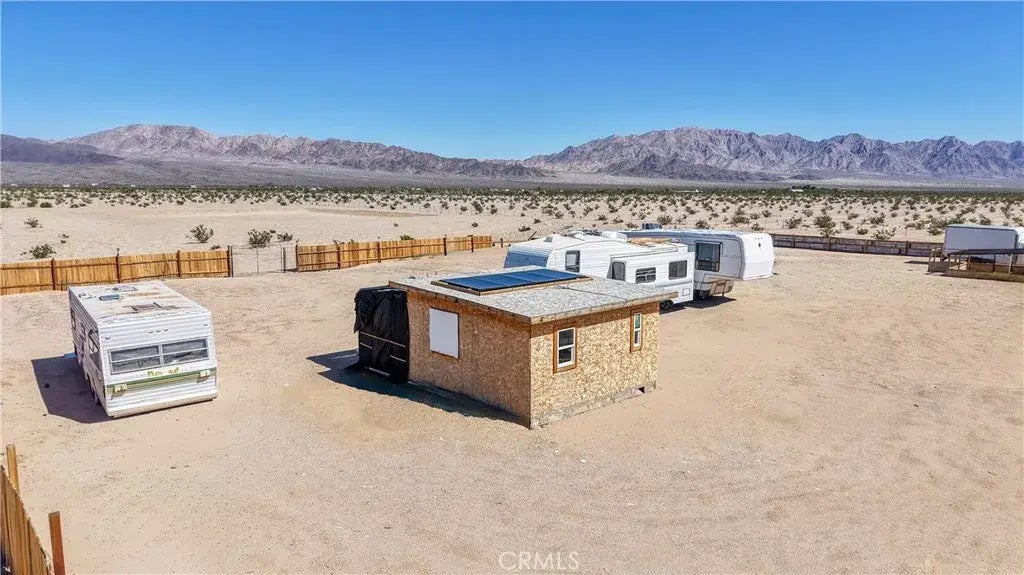 Desert Vibes Only! Wonder Valley Edition! 5 wide-open acres with your name on it... and a head start on your off-grid setup! Property includes multiple RVs, a small storage structure, fencing all around, and major desert aesthetic. Bring your imagination and a generator. The property has power access approximately 330 feet away and water is obtained by drilling a water well. This piece of land is perfect for creatives, weekend warriors, or anyone who wants to say I own land in Wonder Valley at dinner parties. Surrounded by epic mountain views, wild sunsets, and starry nights you cant buy anywhere else. Located just a short drive from downtown Twentynine Palms, the Marine Base, and the entrance to Joshua Tree National Park! CALL TODAY TO BOOK YOUR APPOINTMENT! (coordinates:34.174746 /-115.803277)