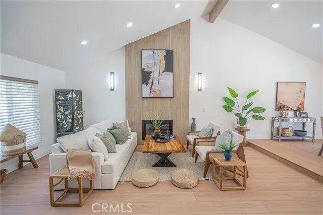 PRICE IMPROVEMENT!! Step into this modern and meticulously remodeled open-concept home, conveniently located in the heart of Reseda, just minutes away from Tarzana and the Northridge Fashion Center. The home offers dual entry, a rare and beautiful feature not seen too often, equipped with a state-of-the-art Thor stove and sleek white waterfall quartz countertops in the kitchen that seamlessly opens up to the expansive living room with high ceilings and an electric fireplace. Newly installed waterproof vinyl flooring flows throughout the home, complimented by LED custom recessed lighting that illuminates every corner and dual pane sliders and windows for energy efficiency. The home boasts fresh, modern paint both inside and out, brand new bathroom vanities, one large bedroom and bath downstairs, plus a bonus room (or enclosed screened patio), with three spacious bedrooms upstairs. The upstairs primary bedroom includes a modern black tiled balcony, a walk-in closet, and an ensuite bath. Save on your water bill with the hassle-free low maintenance yard, equipped with new turf throughout the exterior, newly paved RV parking, a new garage door, and a brand-new A/C system for year-round comfort. Sip your favorite beverage in the rear patio, surrounded by a brand-new wooden fence, and fruit trees, making this an absolutely enjoyable living experience inside and out! Schedule your showing today!!