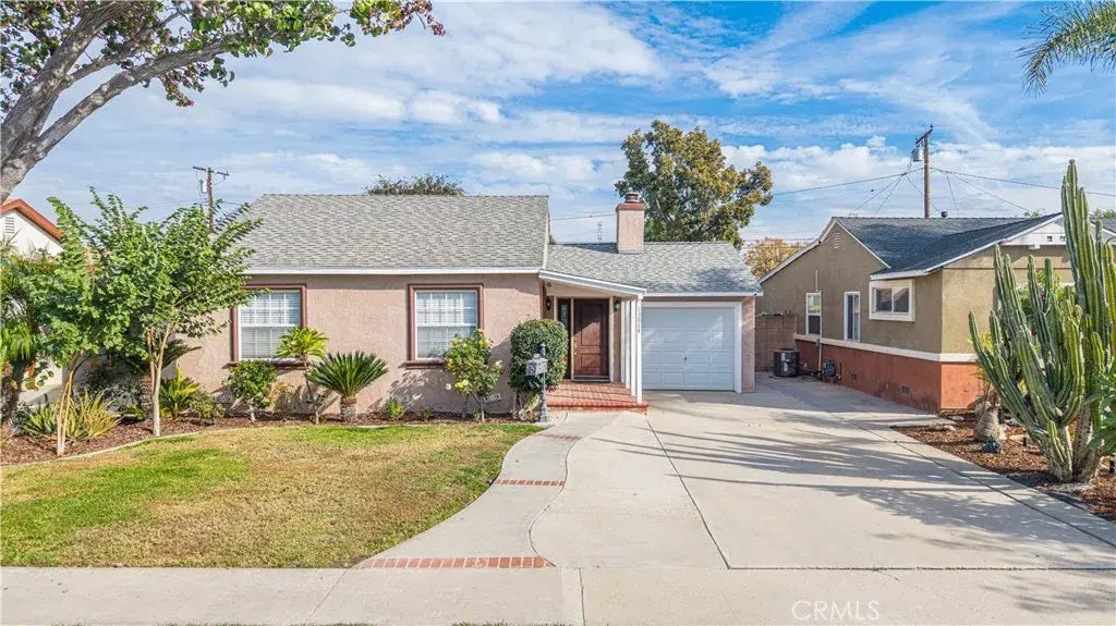 Discover this charming home tucked away in Bellflower. Featuring three bedrooms, two bathrooms, and a family room, this property is sure to impress. Step into a welcoming living room that flows into an open dining and kitchen area. Down the hall, find two bedrooms and a bathroom. A converted enclosed patio now serves as an additional living room, bedroom, and bathroom. The kitchen is equipped with stainless steel appliances, including a stove, microwave, refrigerator, and a new dishwasher. The bathroom has been updated with a modern vanity and tile flooring. The family room is ideal for entertaining guests or providing a fun space for children. The expansive backyard with automated sprinkler system, complete with fruit trees, is perfect for weekend barbecues, gardening, or simply soaking up the sunny California climate. There's also potential for an ADU. The attached drive-through garage includes a Tesla EV charger and laundry facilities. A large driveway accommodates extra vehicles. The sale includes the washer/dryer, all appliances, flat-screen TVs, and furniture. Security cameras and Ring doorbell are installed for your peace of mind. Be advised the property at 13814 Mcnab Ave, Bellflower may qualify for a $7,500 Chase homebuyer grant.