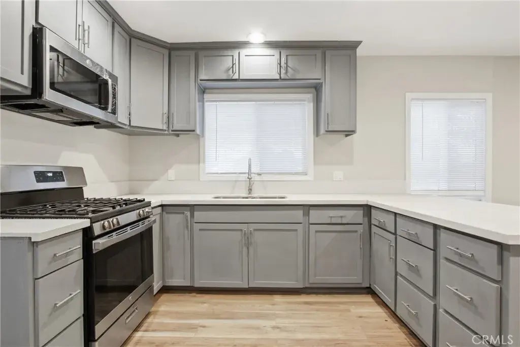 This stunning, newly remodeled 3-bedroom, 1-bathroom home blends modern elegance with everyday comfort. Perched on the top floor, the residence offers a bright and airy open concept living area, enhanced by an abundance of natural light and stylish contemporary finishes. The fully renovated kitchen is a chefs dream, complete with sleek stainless-steel appliances, sophisticated countertops, and ample cabinetryperfect for both cooking and entertaining. This home is an ideal balance of design and functionality, ready to welcome you with a touch of luxury. Don't forget how much money you will save by having your own washer and dryer hookups. Property is centrally located close to freeway with alley access to your one car garage. Most important within walking distance to school and grocery stores.