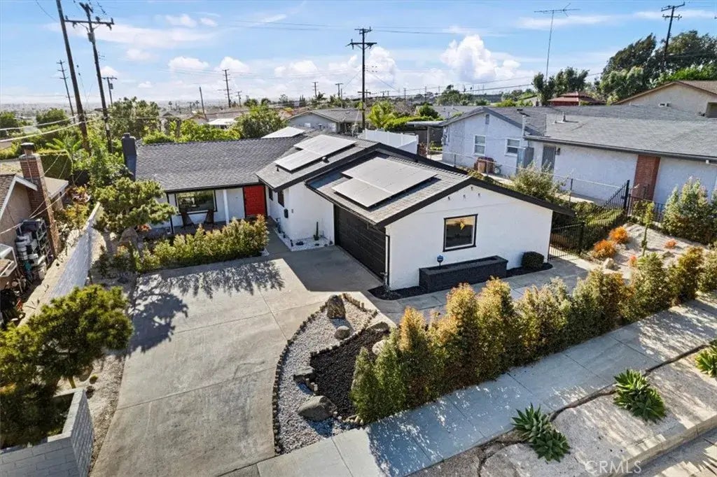 Experience the essence of Montebello, Italian for "Beautiful Mountain," at 1905 Merle Drive in Brighton Hills. This mid-century home masterfully blends clean lines, abundant natural light, and a meticulously reimagined open floor plan, creating a living experience that is both functional and beautiful. Upon entering, you'll be greeted by an open-concept space featuring concrete floors that optimize space and aesthetics. Custom wood paneled ceilings in the living room enhance the seamless flow throughout the home with a centerpiece fireplace. The kitchen serves as the heart of the home, boasting sleek quartz countertops, a wine fridge, and newer appliances. This culinary space not only meets practical needs but also elevates the cooking experience with modern elegance, ideal for entertaining or everyday living. Luxurious bathrooms with spa-like appointments redefine everyday routines, with the hallway bathroom featuring Keith Haring like-wallpaper. Each bathroom showcases luxurious fixtures, cabinetry, with the primary bathroom elegantly showcasing a tiled shower with glass enclosure, fostering a serene ambiance. The primary bedroom is a tranquil haven, featuring two closets and outdoor views to the back yard. This residence also boasts two additional spacious bedrooms, one of which can be repurposed as a den, movie room or office. A clean two-car garage provides convenient laundry hookups and a Tesla wall connector. Key features include paid-off solar panels, a newer pool, newer central air & heat system and turf grass which offers low maintenance. This property benefits fr