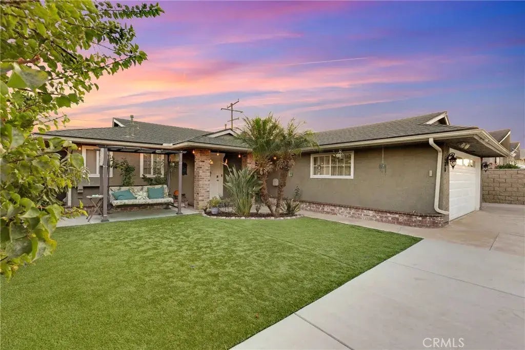 Introducing a stunning single-story home in La Habra, meticulously upgraded to embody modern living at its best! This exceptional property features an electric gate and a block wall fence with a nice design metal framing, providing both security and curb appeal. Low-maintenance elements such as artificial grass, strategically placed fruit trees, and pebbled planters in the beautifully landscaped front yard enhance curb appeal without the demands of traditional landscaping. The exterior is further complemented by elegant brick pillar accents and a spacious epoxy-finished two-car garage. As you step inside, you are welcomed by high-quality finishes throughout. The interior showcases exquisite vinyl wood flooring, custom light fixtures, tasteful crown molding, and fresh baseboards and paint. The inviting foyer seamlessly transitions into a bright and airy living room, perfect for relaxation or entertaining guests, which flows effortlessly into a dining area ideal for both intimate dinners and lively gatherings. The chef's kitchen is a highlight, newly remodeled with quartz countertops, stainless steel Samsung appliances, and custom wood cabinetry that provides ample storage. Additional features include a dedicated laundry room and a luxurious guest bathroom with custom cabinetry and a beautifully designed pebbled shower. Beyond the living room lies a versatile bedroom that can serve as a playroom, home office, game room, or even an additional living area. The third bedroom offers an oversized walk-in closet, providing exceptional storage space that enhances the home's appeal.