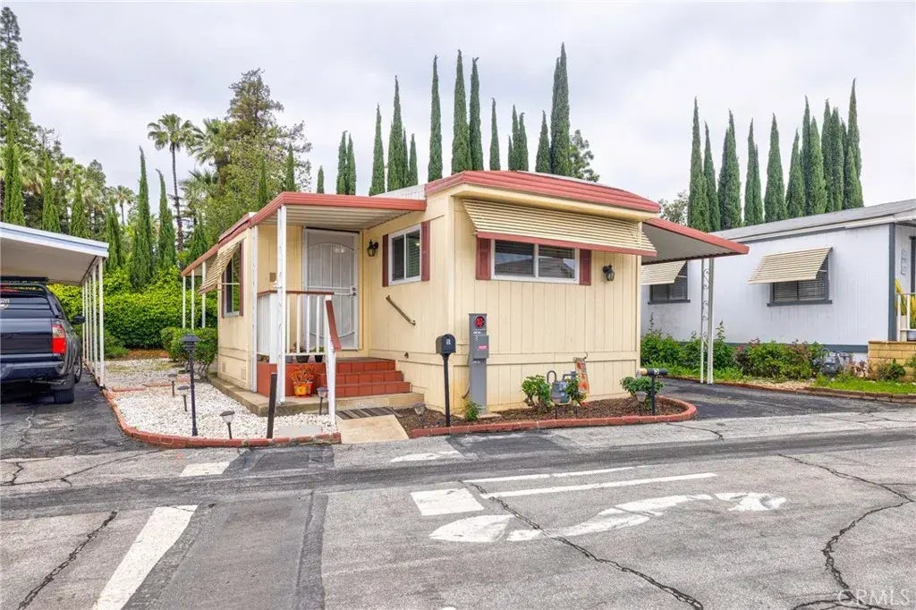 Located in the beautiful community of Foothill Vista Mobile Home Park in the city of Azusa is this recently fully remodeled 2 bedroom 1 bathroom mobile home. The exterior panels have been completely replaced, as well as all the wall insulation, the double paned windows and custom made shutters were added to the exterior of the home. The front stairs and porch are new as well as the saftey railing. The quaint front porch is perfect for relaxing after a long day or to display your potted plants. The covered side patio offers a quite place to bbq and entertain. The carport driveway can easily accommodate 2 vehicles. The shed offers additional storage. As you enter, the open concept floor plan highlights the dining area, living room and remodeled kitchen. All flooring throughout the home has been recently upgraded. Bedroom #1 next to the living room has a closet and storage and is a nice size. Down the hall you'll find the kitchen pantry and recently remodeled bathroom. Bedroom #2 at the end of the hall has a closet and additional storage. The rear door provides access to the patio via new stairs. The central air and heating system was replaced less than 2 years ago. All copper plumbing throughout was installed less than 2 years ago. Foothill Vista Mobile Home Park is a 55+ senior community that offers wonderful amenities including a community room with kitchen, library, game room, gym, spa and swimming pool. A private community park is centrally located and perfect for family gatherings, picnics and barbeques. A dog park and RV parking are also provided. The home is close to s