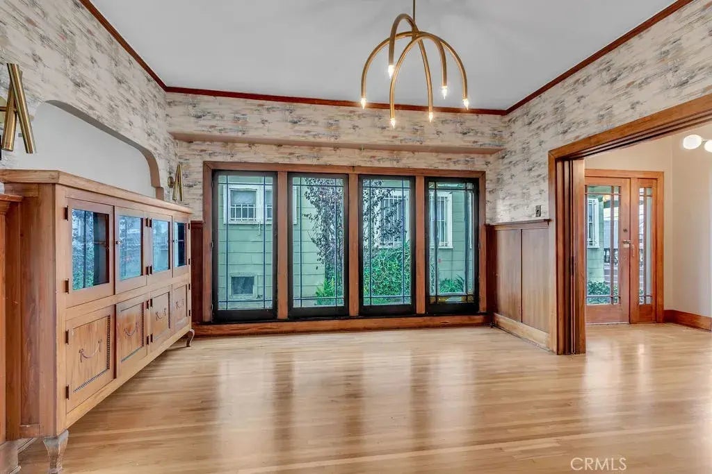 Million Dollar DTLA Skyline Views! Just one exit away from DTLA off 101 freeway and situated in the heart of Boyle Heights and in one of its most view-friendly streets just outside of Downtown LA. Property also considered for SALE. Lease or buy whichever occurs first. This residence stands as a testament to the neighborhood's rich history and promising future. Escape run of the mill and rushed back to market rentals. Immerse yourself in a living masterpiece where historic architectural features harmonize seamlessly with contemporary conveniences with the type of quality, detail, artistry and thoughtfulness typically reserved and observed only in the for sale market. This 4 bedroom side of a duplex professionally updated, remodeled and reimagined with the services of both an architect (kitchen and garage) and also a designer (colors, wallpaper and all else) were engaged to offer a unique blend of old-world charm and modern sophistication. As you enter the front door, be greeted by the warm glow of new lighting fixtures perfectly complementing the timeless design of the home and a mini-split unit for cool/hot air. Experience the allure of refurbished hardwood floors meticulously restored in the stairs, living and dining room areas leading you through rooms framed by wood moldings that have been painstakingly scraped, restored, and re-varnished to breathe life back into their exquisite craftsmanship echoing the elegance of a bygone era. Discover the luxury of a double oven, a true rarity, alongside a microwave, a slick vent hood, and electric range cooktop and designer grade t