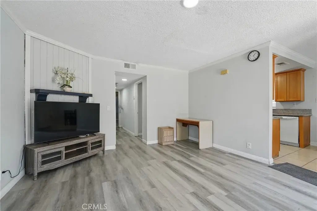 Welcome to this beautifully upgraded end-unit upper-level condo located in the highly desirable gated community of Pomona. This 2-bedroom, 2-bathroom condominium offers a perfect blend of style, comfort, and tranquilityideal for families or individuals seeking a private and peaceful lifestyle. Step inside and be greeted by neutral wall tones that effortlessly complement the laminate flooring, enhanced by elegant baseboards and crown molding. The open-concept floor plan flows seamlessly from the inviting living room with a cozy fireplace into the dining area and gourmet kitchen, where you'll find granite countertops, ample cabinetry and drawers, a gas range, dishwasher, and tile flooringperfect for everyday cooking and entertaining. Freshly painted interiors give both the home and the garage a clean. A well-designed hallway offers additional storage and leads to both the bright junior bedroom with its own dedicated closet and the spacious master suite, which features a walk-in closet and a remodeled en suite bathroom with a fabulous shower and soaking tubideal for relaxing after a long day. Stay comfortable year-round with central A/C and heating, and enjoy the practicality of a two-car garage with washer and dryer hook-ups. The HOA fee includes water, trash, and common area maintenance, making this home not only beautiful but also budget-friendly. Conveniently located near the I-10 freeway, shopping centers, and fine dining, this home offers peaceful living with easy access to everything you need. Come experience the charm and serenity of Pomona. Schedule your private tour