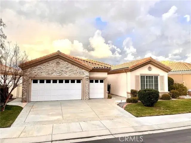 Enjoy the panoramic views of the mountains, valley and golf course, from this home perched on the hilltops of Sun Lakes. This 55+ community is alive with constant activities, clubs and events that you can participate in. The Sunday Brunches at the Sun Lakes Club House are legendary and a perfect setting to meet up with family or guests before entertaining them back at your home. Plenty of access to nearby shopping, groceries, entertainment and dining just a 2 minute drive outside of Sun Lakes. This 3 car garage home is perfect for your two cars and golf cart, plus plenty of storage. The home technically has 2 bedrooms, but has a den or office that can easily be converted into a 3rd bedroom if needed. High ceilings, crown molding and plenty of natural light from the picture window in the living room make this a very inviting home. Both bedrooms have their own private bathrooms as well as a guest bathroom easily accessible. Open floorplan kitchen that looks out into the living room. Separate room for laundry and pantry. Primary bedroom is large, has a full bathroom with shower and bathtub and a walk-in closet. The backyard is accessible under a covered patio. It is easy to maintain with mostly desert plants with a nice patch of grass. Did I mention that this house has some of the best views in all of Sun Lakes? You'll enjoy peacefully enjoying your coffee or tea in the backyard while watching over your domain.