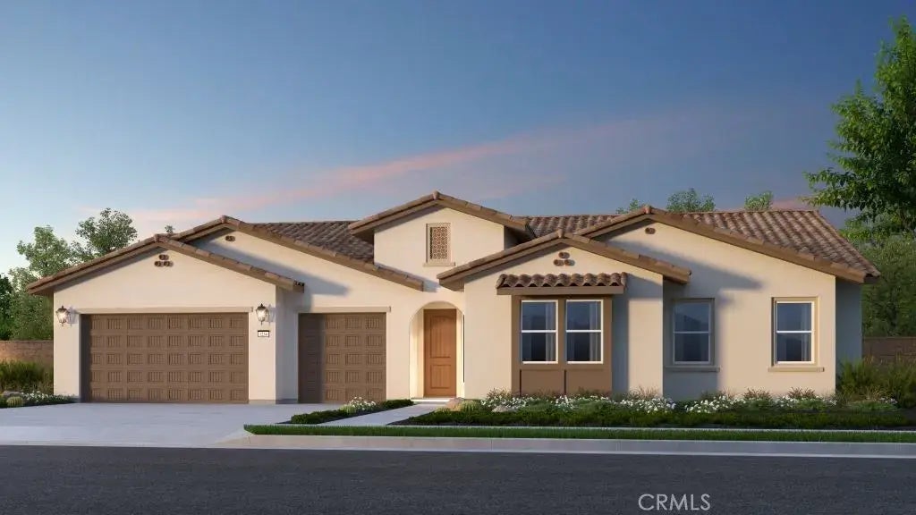 MLS#EV24054368. REPRESENTATIVE PHOTOS ADDED. October Completion! Welcome to the Iris floor plan! This elegant single-story home invites you in from the charming front porch to the foyer. The heart of the home features a spacious great room opening to a gourmet kitchen with a large center island and walk-in pantry. Step out to the covered outdoor living area, perfect for entertaining in Southern California's beautiful weather. Retreat to the luxurious primary suite with dual vanities, a large shower, soaking tub, and walk-in closet. Three secondary bedrooms, including one with a private bath and walk-in closet, accommodate guests. Additional features include a three-car garage, centrally located laundry room, and upscale amenities throughout the home. Ideal for growing families and welcoming guests, the Iris Plan offers comfort and sophistication in a single-story layout. Design options include: Ge Monogram built in refrigerator, and satin nickel upgraded fixtures and hardware.