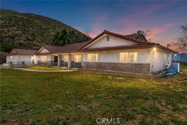 Reche Canyon View home! Secluded and Private. This home features entrance to living room, kitchen/dining room combo w/fireplace, 3 spacious bedrooms, 3 full baths, family room w/fireplace, washer/dryer area, enclosed sun room and a garden. Need a concrete block garage with a workshop, RV parking, ample space for all your vehicles and outdoor toys?All is accessed by a private road leading to your new home: offering plenty of parking privacy and peace. This property has one propane tank(owned), a well and septic system. Personalize this home as you see fit. It's potential is undeniable presenting a fantastic opportunity for those looking to customize their dream home. All this is nestled in a tranquil setting, Enjoy hiking, bicycling and horse trails. It's just minutes away from the 10/60/215 freeways to shopping, restaurants, Loma Linda Hospital etc. Call today for your personal tour!