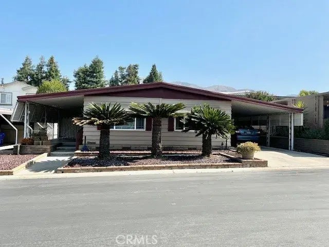 JUST REDUCED!!! Welcome to Valencia Lea, Highland's premiere 55+ community. Spacious 1152 Sq ft, 1978 Woodcrest home has great curb appeal featuring low maintenance, mature landscaping, with 2 bedrooms & 2 baths. The large open living and dining areas have plenty of windows letting in tons of natural light. The spacious kitchen features solid wood cabinets and includes a laundry area with a door to the carport to easily get groceries in from your car. The guest bedroom is just steps away from the guest bathroom with shower/tub combo and updated flooring. The spacious master bedroom features a large, mirrored closet. The master bath has a glass step-in shower stall for ease of entry. The full-length carport includes a storage shed. The low maintenance back yard with enough room for a BBQ/seating area and has a retaining wall and mature landscaping beyond for privacy. The home also features drywall throughout much of the home and is ready for your finishing touches! Dont delay in taking a tour!