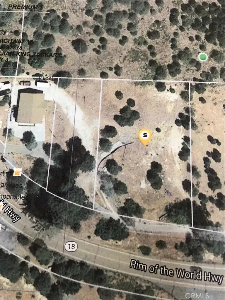 Live or work from home on these 2 Commercial/Service Lots that total 3/4 acre, that have been combined. PANORAMIC 100+ miles views views from Mt. Palomar to the Saddlebacks to Catalina Island. On an access road off Highway 18 at the firestation in Rimforest. East of Berkley Plumbing & 3 lots west of the NeuArt Design property both used as residential homes and commercial businesses. House burned down in Old Fire in 2003. Foundation has been removed and it has a nice level building pad. Water service has been maintained and includes active water meter and Sewer. Backs to National Forest on the north side & Highway 18 on the south side. An excellent location for solar.