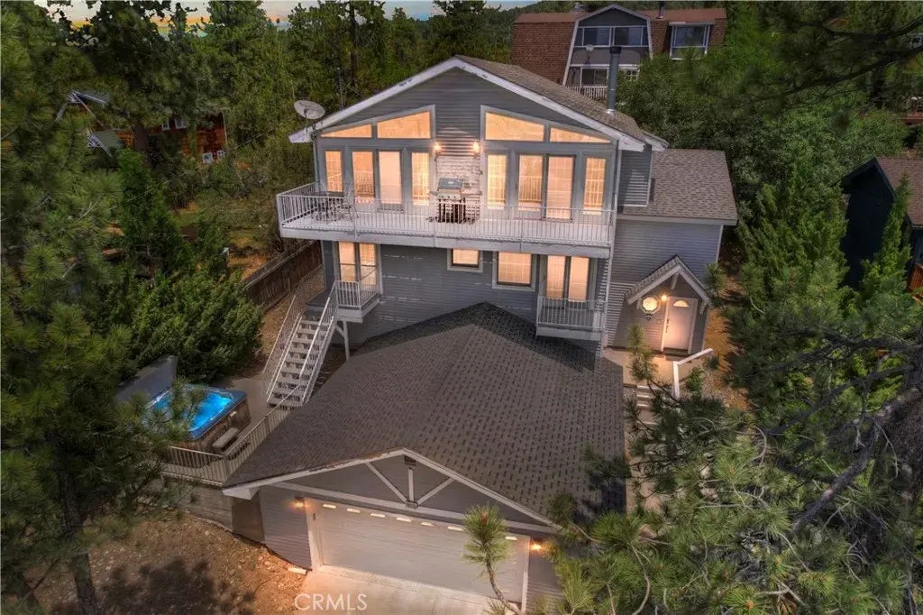 Behold! The ultimate location for those that are searching for the most grandiose of views ~ San Gorgonio Mountain, Big Bear Lake, Bear Mountain and Snow Summit ski slopes are all featured from this all-embracing viewpoint ~ On the main level (top floor) you will find your updated kitchen with granite counter tops, tile floors, breakfast bar that is open to the living room and your view ~ The huge living room encompasses the remainder of this level with a floor to ceiling rock fireplace, that is wood burning, the dining area, wood grain laminate flooring and a wall of windows, with two separate sliding glass doors, making the views front and center from every angle ~ As you walk through the front door you enter into the foyer with tile floors ~ On the next level you will find all 4 bedrooms, 2 bathrooms, a large double sink vanity area and a separate laundry room ~ 2 of the bedrooms have their own private balconies, one of which leads down to the patio and your hot tub ~ From the hot tub you still have views of San Gorgonio, Snow Summit and the lake ~ The driveway offers ample parking and you can utilize the 2 car garage ~ Behind the garage is a huge concrete storage area that would be perfect for storing all your summer and winter toys and gear ~ Almost right across the street from Captain John's Marina ~ If interested, this has been a great vacation rental property for the owners, grossing an average of over $60k for the last four years ~ Don't miss out, make this yours!