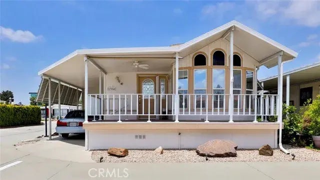 Well Folks, it doesn't get better than this for Southern California 55+ living. Own a piece of real property in a gated community with resort like club house amenities. Monthly HOA is only $205 and get this, the fee includes unlimited water, trash, sewer, Internet, Basic Cable and enjoyment of the magnificent clubhouse, swimming pool, indoor spa, banquet facilities with commercial kitchen appliances, concert hall w/stage, gym, billiard and card room, lounge w/TV, competition shuffle board facility, outdoor pool bar seating for group events, 5 star community laundry mat available 24/7 residents only. Swimming pool is heated year round, swim laps or bring your floaty, perfect treat during the hot summer months. Sale includes a 2002 Silvercrest Park Model. The seller did a fantastic job updating, remodeling & customizing this unit to be one of kind. For starters the property is a Corner Prime Lot with Mountain View located on a a sought out street steps away from the clubhouse. The Kitchen has Corian Counter Tops, Built-in Microwave Oven, Garbage Disposal, Dishwasher, Moen Faucet, Cabinet Pull-out shelves and Under Flat Glass Cook Top. Dining Room has Bay Windows looking out to the large covered front porch and Mountain view backdrop. Bathroom has Corian Counter Top and Walk-in shower. Bedroom has 3 panel Mirrored Wardrobe Closets, Built-in Vanity with drawers, large Mirror and a Ceiling Fan. Family Room is 10x20' with white Plantation shutters, Ceiling Fan and a Pocket Door leading to the Indoor Laundry Room/ Office Space. This space has a Ceiling Fan, Built-in Counter space