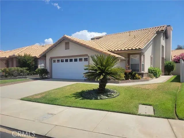 Delightful Sunningdale floor plan located in Sun Lakes Country Club. This 1285 square foot home features 2 bedrooms, 2 baths, a bonus room with a built-in oak bookcase, living room with fireplace, dining room, and a kitchen with an eating area. New vinyl flooring was just installed and this adorable home is ready for occupancy. The backyard has plenty of room for a pet or just relaxing on a summer evening. The attached 2 car garage also has a special place for a golf cart and plenty of storage room. Sun Lakes Country Club is one of the most sought after 55+ communities in Southern California with many, many first class amenities. Come take a look today!