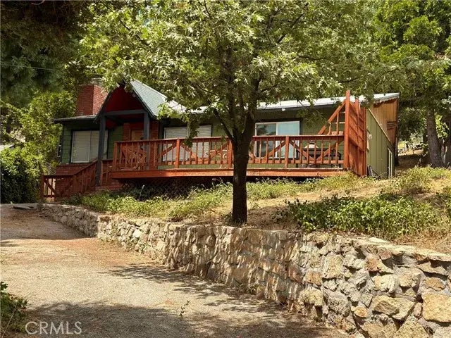 Nestled among the pines and tranquil surroundings, this charming 2 bedroom 1 bath home offers the perfect retreat from the hustle and bustle of city life, all on one floor for easy living. The exterior showcases a quaint, welcoming front porch, ideal for enjoying morning coffee or evening sunsets. Inside, the cozy living room features a rustic brick fireplace, creating a warm ambiance during the winter months. Natural light streams through large windows, highlighting the unique Spanish tile and exposed wooden beams that add character to the space. The kitchen is designed with ample cabinet space and features a breakfast bar for casual dining that opens to the living area, perfect for entertaining. An additional bedroom, located conveniently next to the kitchen, can serve as a guest room, office, or den, offering flexibility and functionality. Adjacent to the kitchen are the two bedrooms which are comfortably sized, each enhanced by custom wood finishes that give a warm and inviting atmosphere. Again, you will find Spanish tiles and custom wood touches in the bathroom. The backyard offers a blank canvas for your landscaping ideas. A long driveway leads up to the home, providing ample parking space, not to mention, additional parking to the left of the driveway. Located in the Lower Rowco Running Springs neighborhood, this home provides easy access to Highway 330, nearby hiking trails, ski resorts, local restaurants and shopping. Whether you're seeking a weekend getaway or a year-round residence, this charming home offers comfort, tranquility, and a true mountain living exper