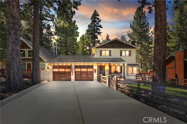 LOCATION IS THE KEY! Introducing a remarkable cabin home located in the desirable lower Moonridge area. You'll be just a stone's throw away from the golf course, restaurants, shops, the beautiful new zoo and the tram to Bear Mountain. Free tram services to the village and beyond are also a short distance from the front door. Situated on a completely level lot this property offers ample parking, and a fully fenced yard provides privacy. The front yard features sprinklers while the back yard has long-lasting rubber mulch ensuring easy upkeep. The front porch was rebuilt in 2019 with maintenance-free trex decking, while the newer trex patio off the main floor bedroom creates space for relaxation. The kitchen and living room feature an open-concept design. The LVP flooring adds a touch of elegance, complemented by the newer quartz countertops with a stunning tile backsplash extending from the counter to ceiling. The island is adorned with a custom butcherblock top, combining functionality and style. The main floor bath has been completely remodeled and boasts a spacious tile shower for your indulgence. The backyard offers a 14 1/2 ft swim spa, the perfect spot to excerise or unwind after a long day. With no neighbors behind the house, you can relish the peace and tranquility of the surrounding forest. There is storage and closets galore. Don't miss the oppportunity to make this your dream home.