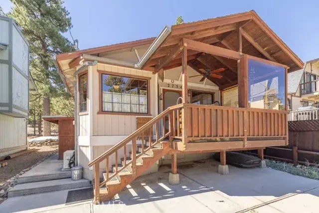 The National Forest is your backyard in this cozy Cabin in the Woods! Enjoy the serenity of Big Bear from your back deck as you look out onto your forever view of the National Forest. This light and bright cabin has vaulted wood ceilings, beautiful enamel wood stove, new flooring, new paint, new lighting, new vanity, new mini split, new window treatments, and more. This 2 Bedroom, 1 bath with Laundry is ready to move in. The front porch is covered and partially enclosed to enjoy with your friends and family, summer and winter. Plenty of parking available and room for your toys in the extra storage shed. Dont miss the perfect place to relax and enjoy nature in Big Bear. Very few homes in Big Bear back directly to the National Forest, this one will go fast!