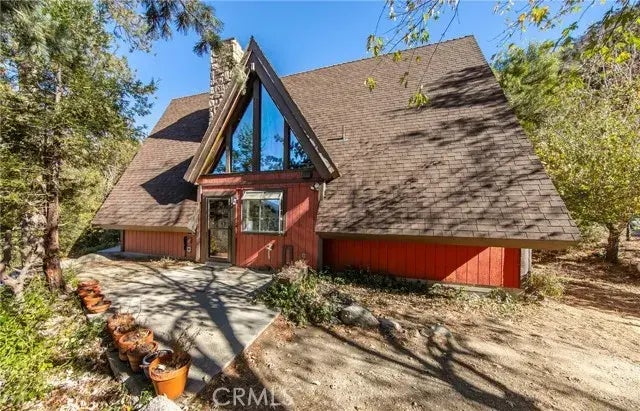 CHECK OUT THIS BEAUTIFUL A-FRAME STYLE HOME. ON OUR MAIN LEVEL WE OFFER A LIVING AND DINING AREA WITH HIGH WOOD CEILINGS,PLANK FLOORING,LARGE WINDOWS AND SLIDER DOOR ALONG WITH HUGE PELLET INSERT STOVE FOR THOSE COZY CHILLY NIGHTS. OUR KITCHEN HAS WOOD FLOORS , TILE COUNTERS,LOTS OF CABINET SPACE,REFRIGERATOR,MICROWAVE, DOUBLE OVEN AND PROPANE COOK TOP. WE OFFER 2 BEDROOMS W/CEILING FANS, 1 BATH,AND INSIDE LAUNDRY. UPSTAIRS WE HAVE A HUGE LOFT MASTER SUITE AREA W/ 3/4 BATH, SITTING AREA THAT COULD BE USED AS A FAMILYROOM OR? WITH WOOD BURNING FIREPLACE AND ROOF PITCH WOOD CEILINGS. WE OFFER CENTRAL HEAT,DUAL-PANE WINDOWS AND NEW CARPET. ALSO WE OFFER A OVERSIZE 2 CAR GARAGE W/ LOTS OF STORAGE AND A SHE SHED THAT COULD BE USED AS A ADU OR? ALL THIS ON A LEVEL LOT WITH MOUNTAIN AND VALLEY VIEWS, INCLUDED WE OFFER A ADDITIONAL SLOPED LOT FACING CEDAR AVE APN 0305-751-20-0000. HURRY !!!! HOME SALE INCLUDED THE LOT AT 0305751200000 MLS #EV24184858