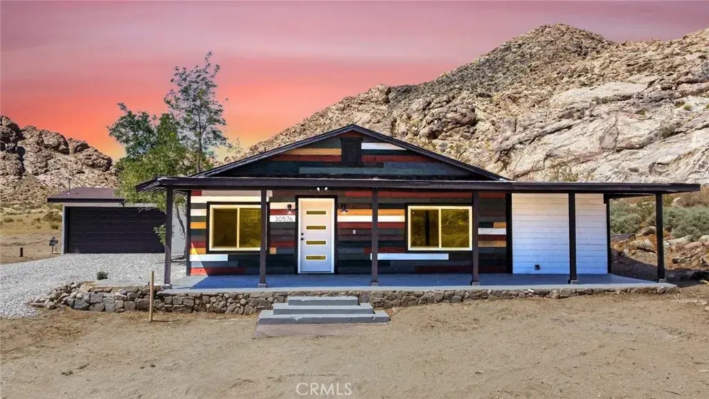 THE DESERT ROCK RANCH ~ Nestled at the foothill of a tranquil desert mount, this unique property is perfect for individuals seeking a charming home with a rural lifestyle attached. Walking through the front door you will immediately notice the impressive features this home offers -- beautiful vinyl flooring throughout, a stylish and sleek gourmet kitchen, and an open floor plan that brings everything together. The kitchen includes a sprawling island, new cabinetry, new quartz countertops, and new stainless steel appliances. Spacious bedrooms and beautifully designed bathrooms. New mini-split HVAC system, new windows, new septic tank, new water heater. Property has its own well as a water source and is also connected to natural gas. Possible ADU play by converting the detached garage into living space or build from ground up with this much acreage. For animal lovers, there is plenty of space for horses, chickens, goats, or any other livestock. Prime location right on HWY 18 with just a few minutes drive to all the stores and restaurants on Bear Valley Rd. 360 degree desert views by day and watch the stars fill up the sky by night. Take advantage of this special opportunity to call this desert dream home your own!