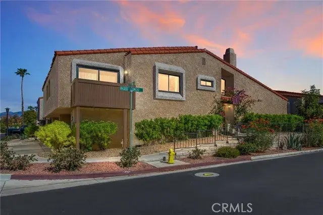 Welcome to the Sundial complex. This property is on FEE Land in the Gateway neighborhood of Palm Springs. A unique CID (Common Interest Development) with spacious and open high ceiling 2-bedroom 2-bathroom with Office/Den space a plus. Enjoy the quiet of your private atrium to garden, read and relax. Remodeled throughout with kitchen and bathrooms having quartz counter tops, upgraded showers and dual pane windows. Step out from your Primary suite on to the balcony and take in the views of the San Gorgonio Mountains. Deep two car garage with storage, Utility Sink, Washer & Dryer all included in the price. Floor to Ceiling Ledger stone wood burning fireplaces can be converted to gas. Short walk to the Pool, Spa, Tennis Courts; Pickle Ball/Paddle Tennis. Mature trees and green belt throughout. This house has many amazing features. Ideally located one block from Palm Springs International Airport. Two miles to downtown Restaurants, Entertainment and Casino. Medical centers/ facilities, Dog park, City Hall and Police station all within walking distance.