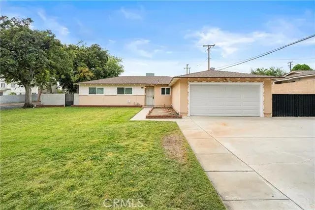 Welcome to your dream home in the serene and picturesque neighborhood of North San Bernardino This charming 4-bedroom, 2-bathroom home sits on a large corner lot and is perfect for all home shoppers. Situated on a quiet, tree-lined street, the property boasts modern comforts like central air conditioning and newer dual-pane windows for energy efficiency. The interior features brand new carpets and freshly painted walls. All bedrooms are outfitted with blinds and ceiling fans for added comfort The primary bedroom offers an attached bathroom and walk-in shower. Outside, enjoy a fully landscaped yard with an automatic sprinkler system and a large wrap-around patio - about 750 square feet of covered and permitted patio space, equipped with outdoor fans - ideal for entertaining. Security and convenience come with a side gate offering back parking access. This community provides nearby schools and shopping centers for easy living. Dont miss this opportunity to own a perfect blend of modern amenities and classic charm!