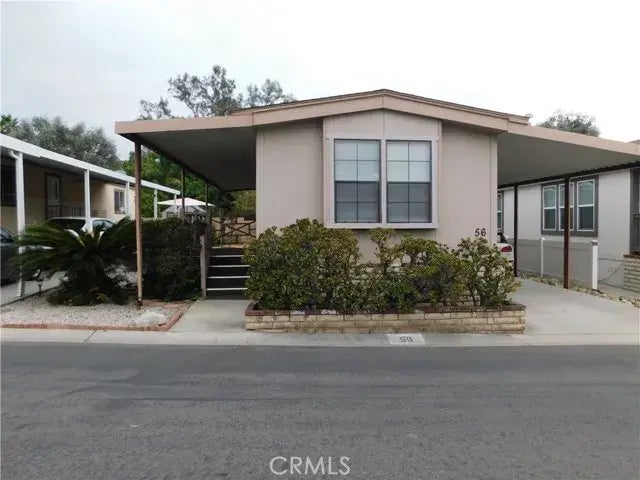 ~~MOVE-IN READY WITH CURB APPEAL~REMODELED TO PERFECTION~~ SITUATED ALONG THE BACK PERIMETER LOCATED IN MENTONE'S FAMILY COMMUNITY OF FRIENDLY HILLS MOBILE ESTATES~~NEW NEW NEW...REMODEL IN 2023-2024 INCLUDES...NEW AIR CONDITIONER, PAINTED EXTERIOR & INTERIOR, NEW FLOORING, BLINDS THROUGHOUT, LIGHTING, SWITCHES & OUTLETS, CEILING FAN, REMODELED BATHROOMS PLUS NEW SHED~~ ~SPACIOUS KITCHEN WITH PLENTY OF CABINET AND COUNTER SPACE PLUS EAT-IN DINING AREA IN KITCHEN WITH BUILT-IN HUTCH...FRIDGE INCLUDED~BRIGHT LIVING ROOM WITH CATHEDRAL CEILING~BEDROOMS AT OPPOSITE ENDS OF THE HOME WITH MASTER IN THE BACK, WALK-IN CLOSET PLUS CEILING FAN~REMODELED MASTER BATH WITH FULL SIZE WALK-IN SHOWER WITH RESURFACED SHOWER, NEW SHOWER DOOR, NEW TOILET...PLUS LARGE LINEN CLOSET~~GUEST BEDROOM IS AT THE FRONT OF THE HOME~GUEST BATH IS REMODELED WITH RESURFACED TUB/SHOWER AND NEW TOILET~SEPARATE LAUNDRY ROOM...WASHER & DRYER INCLUDED~PERFECT SIZE BACKYARD WITH BLOCK WALL ALONG THE BACK PROVIDES PLENTY OF PRIVACY, PAVER PATIO AREA PLUS INVITING FRONT PORCH~2-3 VEHICLE CARPORT~SHED~CALL FOR A TOUR, YOU WILL DEFINITELY BE IMPRESSED !!
