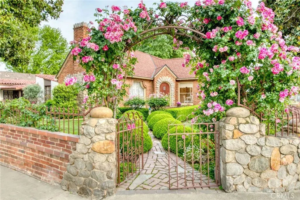 Storybook Tudor Cottage. This historic home was built in 1936 by a skilled mason of brick with hand split river rock trim and detail of the finest craftsman from a bygone era. Amazing design and architectural details throughout. Original brick wall with rock pillars are complemented by custom iron gates, fence and arches. Take a stroll though The professionally designed Cottage Garden with whimsical brick and rock walkways and patios to match the exterior. Filled with beautiful rose covered arches and flowers, it was featured on the cover of Cottages and Bungalows Magazine. There is a Garden Room attached to the spacious garage that includes the laundry facilities. The interior has been lovingly restored retaining many original details. 2 bedrooms 1 bath with large attic and basement. The arched front door entry leads to the living room with picture window, original arched French doors, Fossil Limestone flooring and an original quartz rock fireplace. Dining room with white oak floor and original Chrystal chandelier. The kitchen and bath were restored with tile that was historically correct for the period. Kitchen cabinets were replicated exactly like the original with original Bakelite and chrome hardware. A darling turret Breakfast Nook with vintage milk door. All original interior glass doorknobs remain. Too many vintage details to list, this Charming Cottage won't last long!