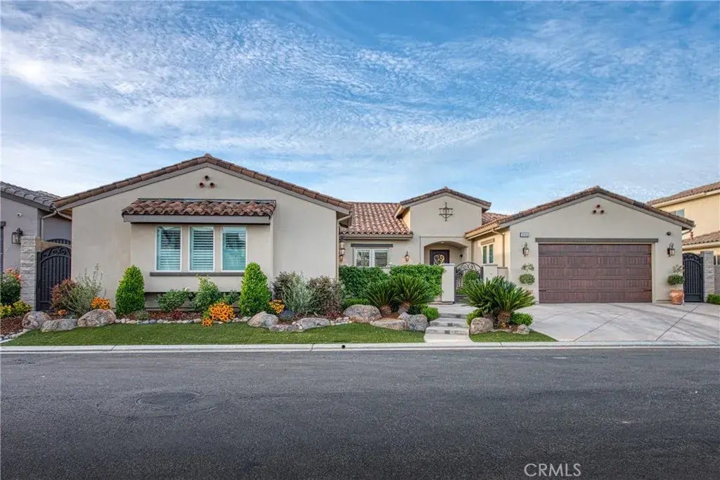 Gorgeous single level Gary McDonald home at Copper Hills gated community is absolutely turnkey! This Santa Barbara style home features an authentic Spanish barrel tile roof, a smooth stucco finish and a gated front courtyard. There are loads of upgrades and an owned 9.7 KW solar system installed in 2021 essentially offsets all electrical consumption. The open floor plan flows seamlessly with a gourmet chef kitchen that overlooks the great room. The large island and countertop have both been extended in size. All appliances upgraded; there is a built-in fridge, wine fridge, gas cooktop, two ovens, farmhouse sink, instant hot, purified water, Quartzite counters and backsplash. The home exudes modern elegance with wood floors throughout and colors in soft greys and neutrals. Classic and modern lighting, LED cans, a NUMA soft water system, a smart home system with security and cameras. The three car garages have many New Age built in cabinets and workbench, a 50-amp EV charging station and finished floors. Upwards of $200,000 spent in upgrades and improvements! Once outside you will appreciate the beautiful landscaping and low maintenance synthetic lawn front and back along with a built-in pool and spa. This is a lovely community with the very best rated schools in CUSD and a close golf cart ride to Copper River Country Club.