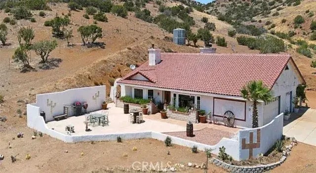 Short Sale approved price $639,000 ! Gorgeous Spanish Style Ranch Home with stunning top of mountain views with lot that spans just under 5 acres! A flat Pad just below is ready for new structure. Beautiful 4 spacious Bedrooms and 4 Bathrooms with elegant double wood entry doors with glass accents. Energy-efficient Dual Pane Windows and dual A/C units for climate control. A grand floor-to-ceiling raised-hearth Refaced Fireplace in the living room and an Indoor BBQ for grilling. The Master Bedroom has its own fireplace and Walk-in Closet. The Master Bathroom offers a Jetted Tub and Dual sink vanity. Wiring in place for a Security System. Step outside onto the thoughtfully designed with low-maintenance offering a serene space with mesmerizing views and nightly sunsets. Features a 3 car garage and RV parking. Storage Containers are on property. This property has graded areas that are usable, and the possibilities are endless! This is a Short Sale & the sale is Subject To Lender's Final Approval.