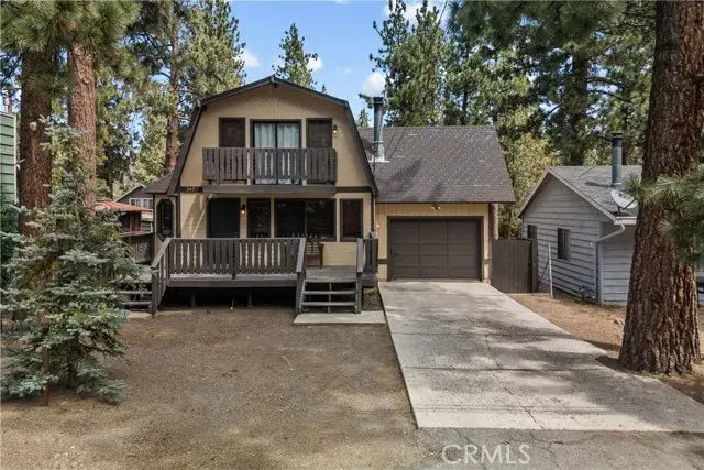 Welcome to this delightful Gambrel-style cabin in Big Bear City, CA. Nestled in a serene and picturesque setting, this charming retreat is perfect for investors, vacationers, or as a full-time residence. Located in a quiet neighborhood, it's just a short drive from Big Bear Lake, ski resorts, hiking trails, and other year-round attractions. This property is a proven performer in the short-term rental market and comes fully furnished, making it an excellent investment opportunity. Relaxation is guaranteed with a private spa, perfect for unwinding after a day of adventure. The cozy interior combines rustic charm with modern amenities and style, creating an inviting atmosphere for guests. The spacious living areas include a comfortable living room with a fireplace, a well-equipped kitchen, and ample dining space, perfect for entertaining or enjoying a quiet evening. The cabin's multiple bedrooms and baths can comfortably accommodate a large number of guests, ensuring everyone has their own space to relax. Both upstairs bedrooms feature their own private balconies, offering a perfect spot to enjoy your morning coffee or gaze at the stars. The property also features a versatile game room/bonus room and an attached garage, providing extra space for recreation and storage. Outdoor living is enhanced by a large front porch and a back deck, ideal for BBQs, gatherings, or simply enjoying the fresh mountain air. Whether you're looking for a lucrative rental property, a cozy getaway, or a full-time residence, this Gambrel cabin offers the best of all worlds. Don't miss the chance to ow