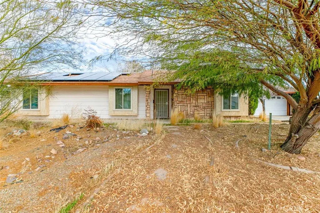Welcome to this charming 4-bedroom, 2.5-bath home nestled in the vibrant community of Victorville, CA! Offering 1,600 square feet of inviting living space, this residence blends comfort, convenience, and sustainability. Step inside to find bright and airy interiors with ample natural light, where the open living room offers seamless access to the backyard through beautiful sliding glass doors, perfect for indoor-outdoor living. The home features four well-sized bedrooms with plenty of closet space, including mirrored closet doors and cozy wood-style flooring, along with two and a half bathrooms, including a master bath with a double vanity and abundant storage. The kitchen provides a functional space ready for your personal touch and design ideas. An expansive two-car garage offers room for vehicles, storage, or even a workshop, complemented by a large driveway that adds extra parking space, ideal for guests or recreational vehicles. Enjoy the benefits of fully paid-off solar panels, reducing energy costs and promoting eco-friendly living. The spacious backyard serves as a serene outdoor retreat, featuring a charming courtyard area, mature trees, and a covered patioperfect for relaxing or entertaining guests. With convenient gated side access, this property adds versatility for storage or additional parking. This home is not only a smart investment with its energy-efficient solar system but also offers a blank canvas for you to personalize and make it truly your own. With its combination of space, location, and potential, this property is a must-see for anyone looking to se