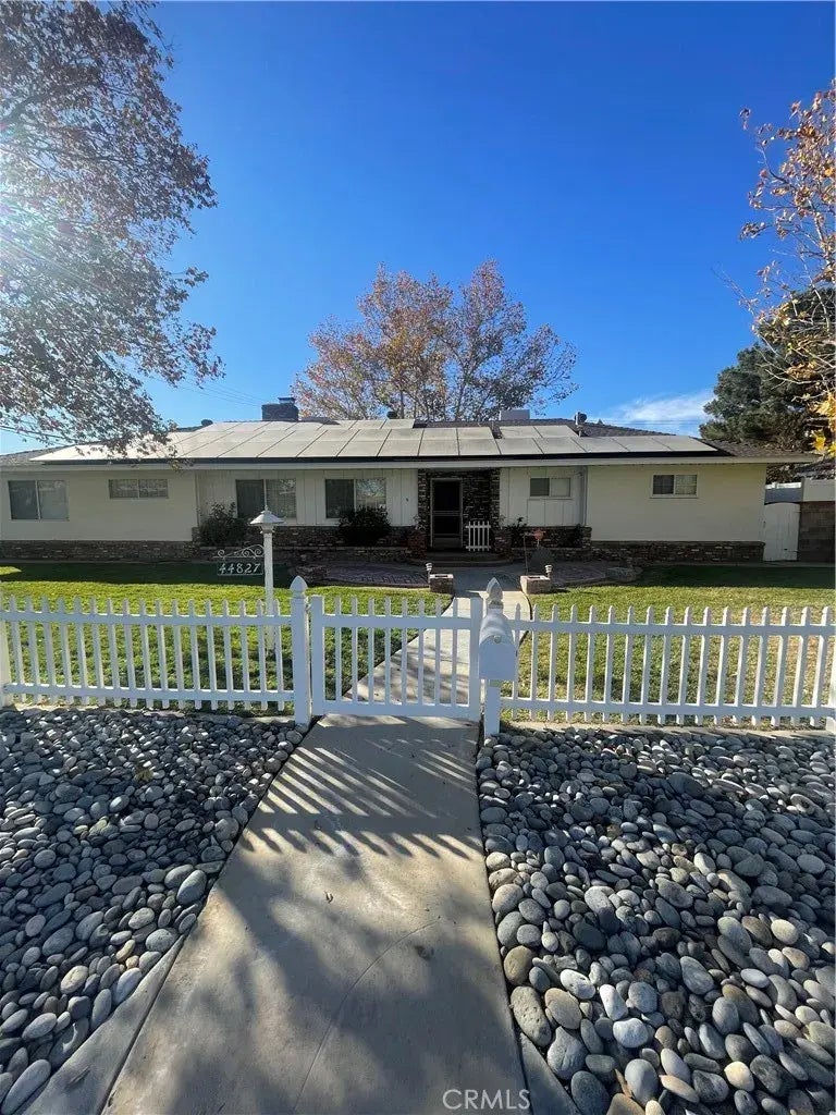 Welcome to 44827 11th Street! This charming 4-bedroom, 3-bathroom home boasts 2,604 sq. ft. of living space on an expansive 12,440 sq. ft. lot. Featuring an open floor plan, a modern kitchen with ample storage and a large island, and a luxurious primary suite with a spa-like bathroom, this home is perfect for comfortable living. The additional bedrooms offer flexibility for family, guests, or a home office. The spacious backyard provides endless possibilities for entertaining, gardening, or creating your dream outdoor retreat. Located in a peaceful neighborhood near schools, parks, and shopping, this home is a perfect blend of convenience and tranquility. Dont miss outschedule your tour today! Property features solar panels!