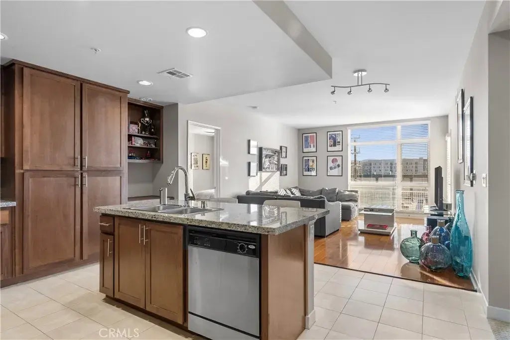 Welcome to the premier luxury residence at The Ascent! Located on the top floor, this expansive 2 bedroom, 2 bathroom Plan B corner unit spans 1,050 sq. ft. and offers the perfect blend of modern design and comfort. Featuring an open-concept layout, this immaculate home is filled with natural light pouring in through south-facing windows. The beautiful kitchen is equipped with stainless steel appliances, maple cabinetry, granite countertops, and a generously sized island with seating! Through the spacious living area, enter your own private balcony to enjoy the view or take in the fresh air and sun! What is best about this floor plan is the privacy offered as the two bedrooms are located on opposite sides of the living area. The primary bedroom features a walk in closet, a generously sized ensuite bathroom and large windows to let in a ton of natural light. The second bedroom is located next to the full bathroom, making it convenient for all. Additional features of this home include in-unit washer and dryer, ample storage space, central heating and air conditioning for comfort year-round. Unit comes with two side by side parking spaces in the secure underground garage. There is plenty of guest parking as well as electric vehicle charging stations.The Ascent community offers an exceptional range of amenities: a resort-style pool and spa, outdoor barbecues, dog park, clubhouse with a kitchen, lounge area, meeting areas, game tables, televisions, a private gym and so much more! Located in a vibrant area, this community is within walking distance to the Westfield Topanga Mall a