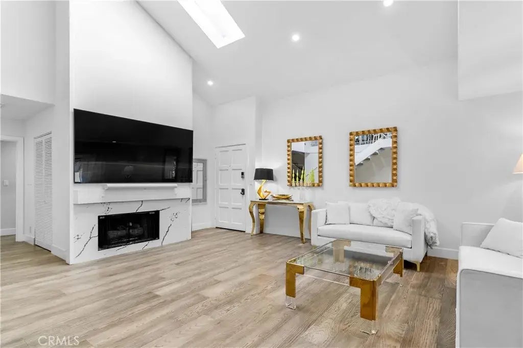 Welcome to this beautifully remodeled townhouse style condominium with 2 bedrooms+den, which can be used as a third bedroom, featuring an impressive layout, natural light throughout, and high-end upgrades. The living room features high ceilings and skylights, creating a light and airy atmosphere. A large loft overlooks the living area and can easily be used as a third bedroom or private suite. The dining area sits comfortably beside the remodeled kitchen, which is equipped with top-of-the-line appliances, including a Samsung glass refrigerator. The kitchen also features new cabinetry, quartz countertops, and beautiful curtains that enhance the aesthetic throughout the property. Enjoy a good-sized balcony just off the dining and living areasideal for morning coffee or evening relaxation. The master bedroom boasts soaring ceilings and a large window that fills the space with natural light. It includes central A/C, and a generously sized walk-in closet. Above the master bedroom, you'll find a spacious 200 sq. ft. storage areaperfect for holiday dcor, extra toys, or other seasonal items. The en-suite master bathroom features dual vanities ("his and hers" sinks) and a spacious standing shower. The second bedroom is also bright and roomy, offering plenty of natural light. In addition, there are two full bathrooms in the home for added convenience. The home includes in-unit laundry with a newer Samsung washer and dryer, updated windows and doors, and is located in a community with a well-maintained HOA. The building has a brand-new roof. This is a special assessment of $182.06 per